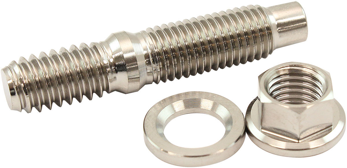 Aeroflow Performance titanium studs are 45% lighter and stronger than your regular steel stud and nut combo you find at your local bolt shop. The high strength and super lightweight Titanium 6Al-4V grade 5 studs are the perfect replacement for turbo manifolds, exhaust headers or intakes. The use of factory OEM bolts and studs they can result in stripped or broken bolts and inadequate clamping force, resulting in leaks. Aeroflow Performance titanium stud and locking nut combo incorporates a hex key tip that allows them to be easily installed using an Allen wrench.