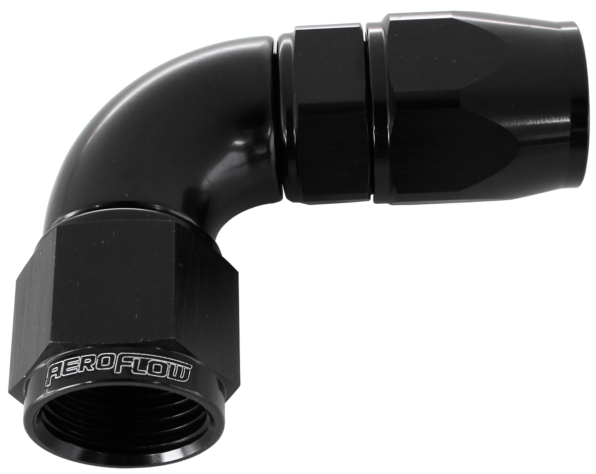 Aeroflow's 570 Series PTFE fittings are a CNC machined one piece fitting which provides uninterrupted flow. The purpose designed olive compresses into the PTFE (Teflon®) inner tube for easy, leak free assembly. The mandrel bent tight radius body has superior wall thickness and a swivel head allowing for easy adjustment. Aeroflow's 570 series fittings are the choice of professionals for use in power steering, automatic transmission, nitrous, fuel systems, cooling systems, vacuum applications, oil systems, brake and clutch lines. Compatible Hose: 200 Series Stainless Steel braid and 250 Series Nylon braid PTFE (Teflon®) hose.