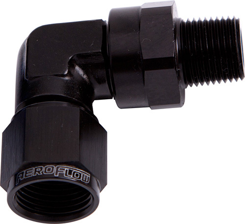 Male NPT to Female AN adapter. Adapt from an NPT thread to AN flare with a 90 degree bend and full 360 degree swivel. Various sizes available.