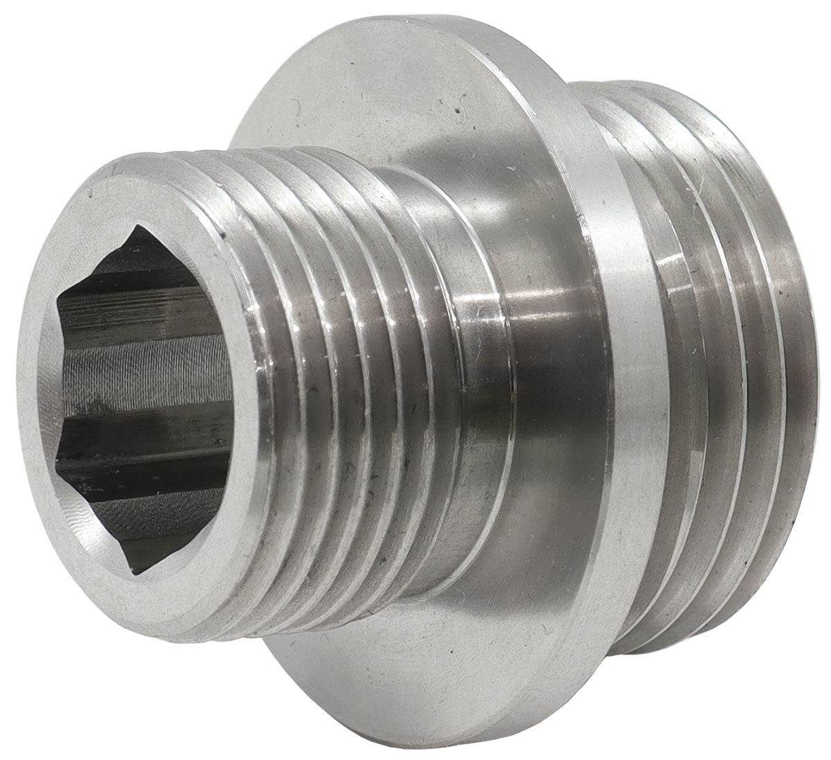 Aeroflow oil filter thread insert adapter is designed as a stock replacement mount for securing an oil filter to the engine block. Manufactured from 304 stainless steel for durability it features an Allen key head to allow the insert to be screwed into the engine block. This insert fits most Big Block Chevy (Gen 6). The adapter threads into engine block with 1"-12 thread and has 13/16"-16 thread to accept the Chev OE oil filter.