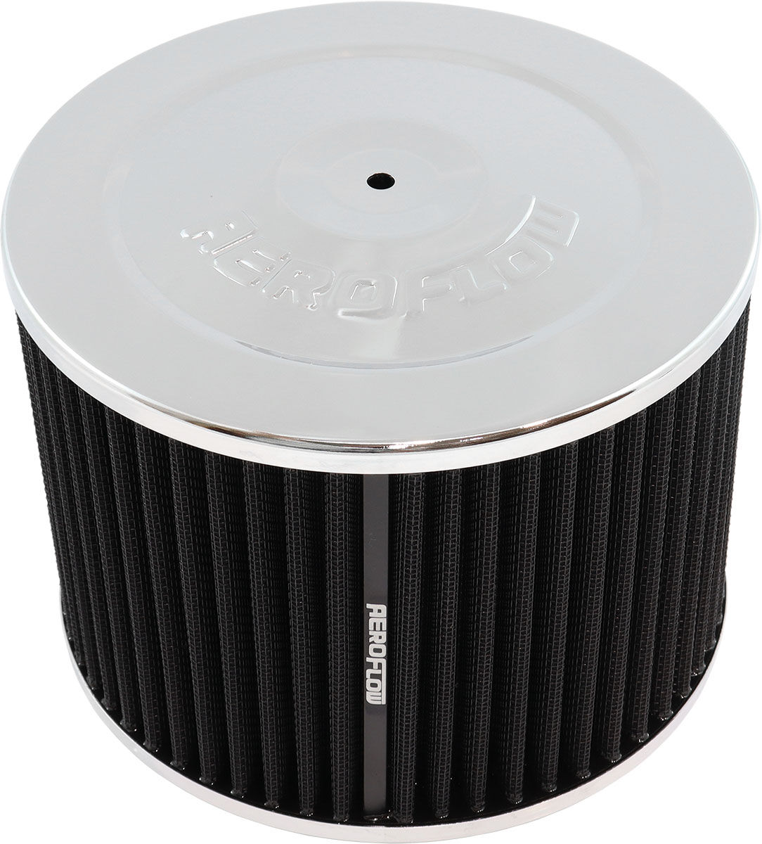 Aeroflow Air Filters are designed with excellent filtration in mind, all the while increasing performance! Originally designed for performance minded racers, these re-usable filters are manufactured from high quality cotton, pre-oiled for outstanding dust retention and are washable. We have the newest technologies in air filter manufacturing that allows us to provide you with what we feel is the highest quality filter at a great price. Engineered for performance and durability on the street or track, you will NEVER NEED ANOTHER AIR FILTER EVER AGAIN. Chrome-plated or black finish with reusable/washable cotton elements. Aeroflow air filter assemblies work with all popular standard 4150 (5-1/8" / 130mm) carburettors.