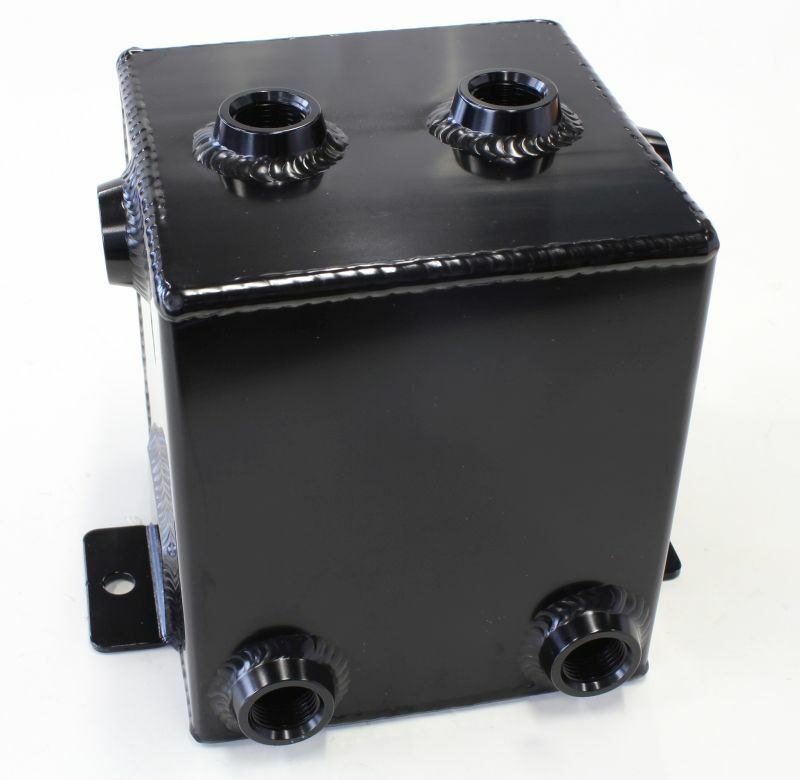 These Aeroflow Performance alloy tanks are designed for universal applications. They can be used for such applications including surge tanks, breather tanks, water tanks, vacuum tanks and many more. They are robotically TIG welded with 2.5mm thick aluminium. The tanks feature eight female -8 O-ring ports that allow vast variety of adapter fittings to be placed into various positions around the tank. NOTE: if not using all ports ensure to block them with fittings (sold separately). This tank has two female -8an O-rings ports located on the top, front and back of tank, also one on each side of the tank above the mounting tabs. This allows multiple locations for plumbing applications.