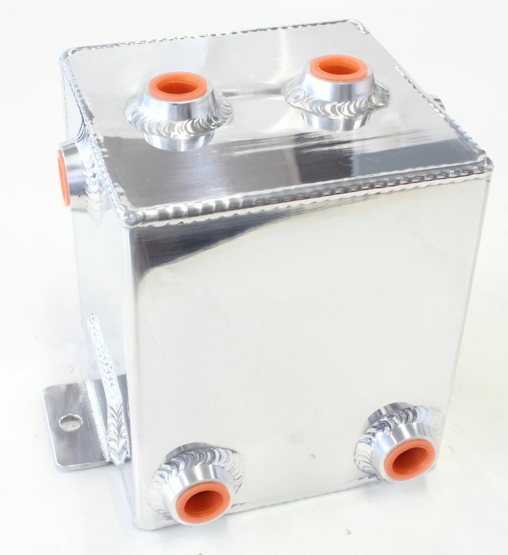 These Aeroflow Performance alloy tanks are designed for universal applications. They can be used for such applications including surge tanks, breather tanks, water tanks, vacuum tanks and many more. They are robotically TIG welded with 2.5mm thick aluminium. The tanks feature eight female -8 O-ring ports that allow vast variety of adapter fittings to be placed into various positions around the tank. NOTE: if not using all ports ensure to block them with fittings (sold separately). This tank has two female -8an O-rings ports located on the top, front and back of tank, also one on each side of the tank above the mounting tabs. This allows multiple locations for plumbing applications.