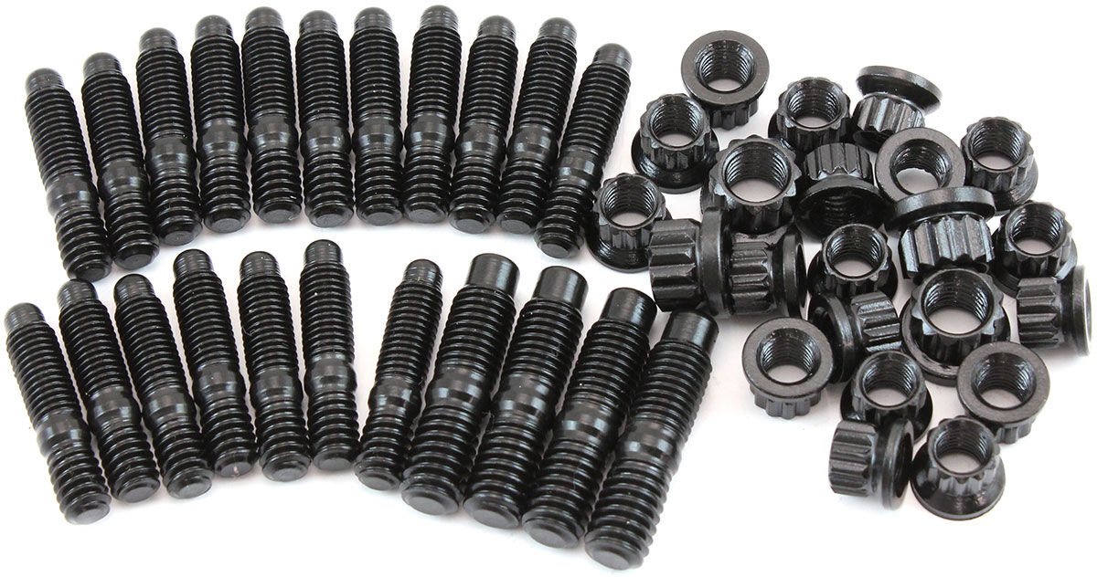 These oil studs are manufactured from aircraft quality 8740 high tensile strength chromoly steel and cold-forged to ensure molecular integrity within the stud. All kits come complete with 12-point nuts and hardened washers for an even load distribution and accurate torque readings.