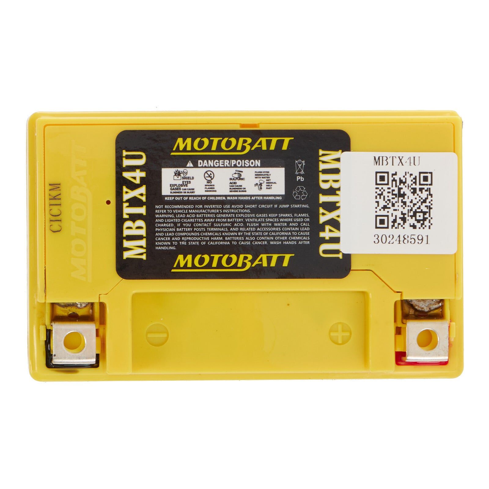Specifically designed for motorcycles, Motobatt batteries offer much higher cranking power and higher amp hour ratings. Their batteries can withstand constant starting without draining the battery or causing long-term cell damage. Their unique terminal design offers far greater versatility, allowing them to fit a wider range of applications which enables stockists to carry a narrower range of batteries for a large market, which makes it easier for retail customers to find a battery to fit their vehicle, in stock. Motobatt batteries are manufactured from Absorbed Glass Mat (AGM), this design has revolutionised the motorcycle, ATV, lawnmower and small engine industry. QuadFlex provides a unique four-terminal design with two positives, two negatives along with height spacers that permit an almost universal fit. All Motobatt AGM Batteries are maintenance-free, non-hazardous, non-spill, charged and ready to install directly out of the box. Each plate in the battery is wrapped in a fibrous glass matting which not only absorbs all liquid electrolytes but keeps the plates separated in a cushioned environment. This stops the plates from vibrating which can break down the plate and cause short circuits between the plates or break plate welds which results in battery failure. The thick, heavy plates used in Motobatt designs really make the difference. AGM batteries also have a much lower inherent self-discharge rate than wet flooded types. And, as a higher amp hour AGM battery, the Motobatt battery can also discharge more deeply and recover repeatedly under the vehicle alternator charge or through maintenance charging. A standard flooded cell battery is not capable of withstanding this type of cycling without premature failure. Your Motobatt is a Factory Activated battery, it comes to you pre-conditioned and fully charged for optimum performance and ready to install out of the box. 80% of early Powersports battery failure is caused by faulty activation of the dry battery plates. Additionally, you never have to mess with acid or top up fluid levels or remove corrosion from the terminals caused by gassing, which are all common with standard flooded battery types. Specifications: Voltage: 12V C(10) Ah: 4.7 C(20) Ah: 5 CCA (Cold Cranking Amps): 70A MCA (Marine Cranking Amps): 126A PHCA (Pulse Hot Cranking Amps): 290A Weight: 1.57kg (3.46lbs) Dimensions (LxWxH): 114 x 70 x 87mm (4.49 x 2.76 x 3.43) Terminals: 2, M5x2.5 (MPT1) Screws: 4, M5x7 (2x MPS1) Allen Wrench: 1, 3x3 (MPAK1) Terminal Caps: 2, 11x5.5 (MPC1) Spacer: None Features: Patented QuadFlex multi-fit terminals. Absorbed Glass Mat technology – ensures greater protection against vibration and gives a longer lifecycle. Fully sealed – Can be mounted and transported in any position. No initial charging – Install and go, charged right out of the box. Maintenance Free – No messy acid to worry about. 20% more cold cranking amps (CCA). Easy accessory connection with multiple terminals.