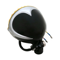 Attitude Inc's round finned grill headlight features a 5" diameter housing. This is the perfect addition or upgrade to any cruiser, bobber, cafe racer, or retro style motorcycle.