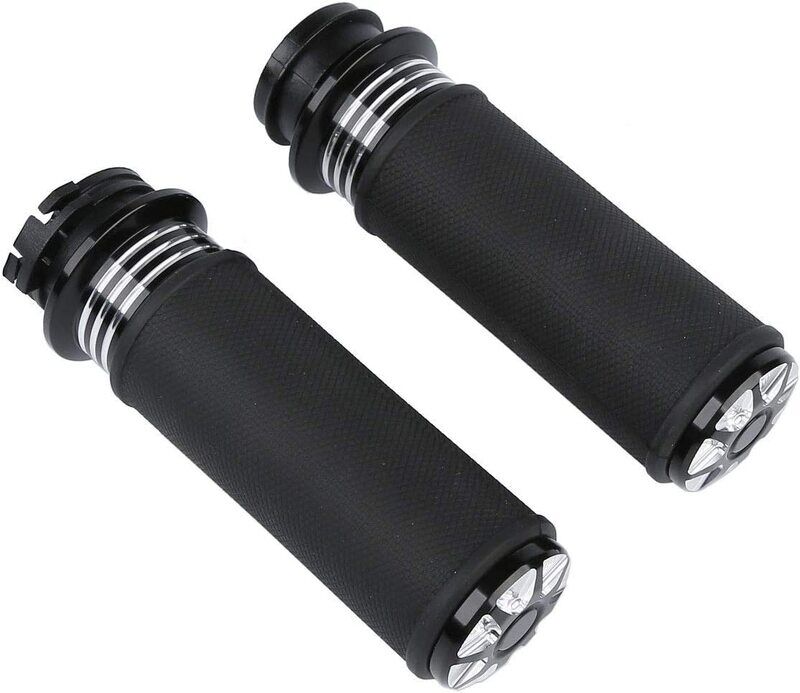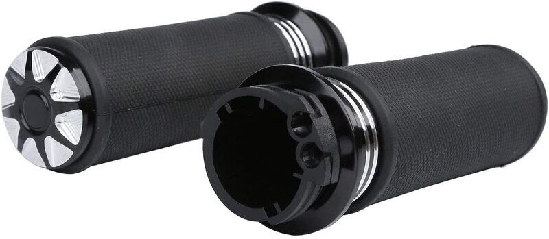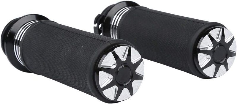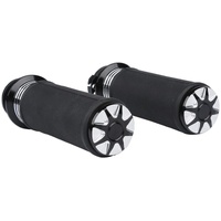 Attitude Inc's Universal Handlebar Hand Grips gives you the latest styles to complement your handlebars , Unique customized look, modern, stylish, attractive, and functional. Add features to your motorcycle, and enhance your motorcycle appearance. Black motorcycle grips with throttle assistor control on the right side, and it will make the operation easier. Avalable in all Chrome/Black or Black/Black and come as a set to suit your 1" HandleBars ends.