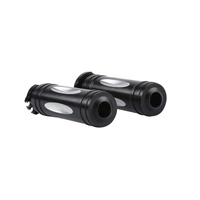 Attitude Inc's Universal Handlebar Hand Grips gives you the latest styles to complement your handlebars , Unique customized look, modern, stylish, attractive, and functional. Add features to your motorcycle, and enhance your motorcycle appearance. Black motorcycle grips with throttle assistor control on the right side, and it will make the operation easier. Avalable in all Chrome/Black or Black/Black and come as a set to suit your 1" HandleBars ends.