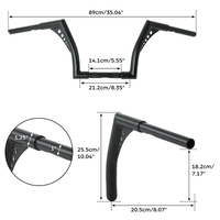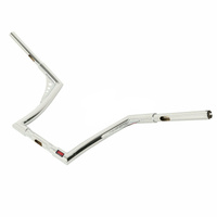 Attitudes Inc's Bonanza Ape Hangers are available in different sizes from 10" to 18". Bars are 1-1/4" thick and incorporate wiring holes, riser clamp area is 1" so that standard risers and handlebar controls can be used. Available in chrome and black powder coat.