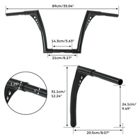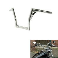 Attitudes Inc's Bonanza Ape Hangers are available in different sizes from 10" to 18". Bars are 1-1/4" thick and incorporate wiring holes, riser clamp area is 1" so that standard risers and handlebar controls can be used. Available in chrome and black powder coat.