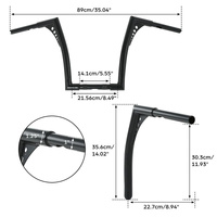 Attitudes Inc's Bonanza Ape Hangers are available in different sizes from 10" to 18". Bars are 1-1/4" thick and incorporate wiring holes, riser clamp area is 1" so that standard risers and handlebar controls can be used. Available in chrome and black powder coat.
