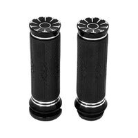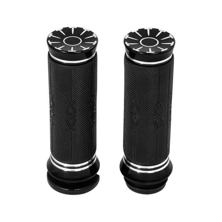 Attitude Inc's Universal Handlebar Hand Grips gives you the latest styles to complement your handlebars , Unique customized look, modern, stylish, attractive, and functional. Add features to your motorcycle, and enhance your motorcycle appearance. Black motorcycle grips with throttle assistor control on the right side, and it will make the operation easier. Avalable in all Chrome/Black or Black/Black and come as a set to suit your 1" HandleBars ends.