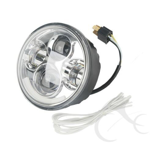 Features: - Headlight Type: LED Headlight, Chrome inner bezel. - Material : Black die-cast aluminum housing,clear PC lens. - Dimensions: 5.75 inch. - This head lamp is H4 connector. - Designed with Hi-Low beam and out put voltage can be 9-100V. - Each LED light is a dual beam system with both high beam and low beam. - 40W High Beam, 20W Low Beam. - Black wire -> Negative/Ground. - Yellow wire -> Low Beam. - White Wire -> High Beam. Fitment: FITS Harley sealed beam With 6 round (or sometimes called 5.75 or 146mm) style lamp housing.