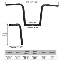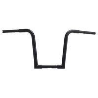 Attitudes Inc's Hefty Ape Hangers are available in different sizes from 10" to 18". Bars are 1-1/4" thick and incorporate wiring holes, riser clamp area is 1" so that standard risers and handlebar controls can be used. Available in chrome and black powder coat.