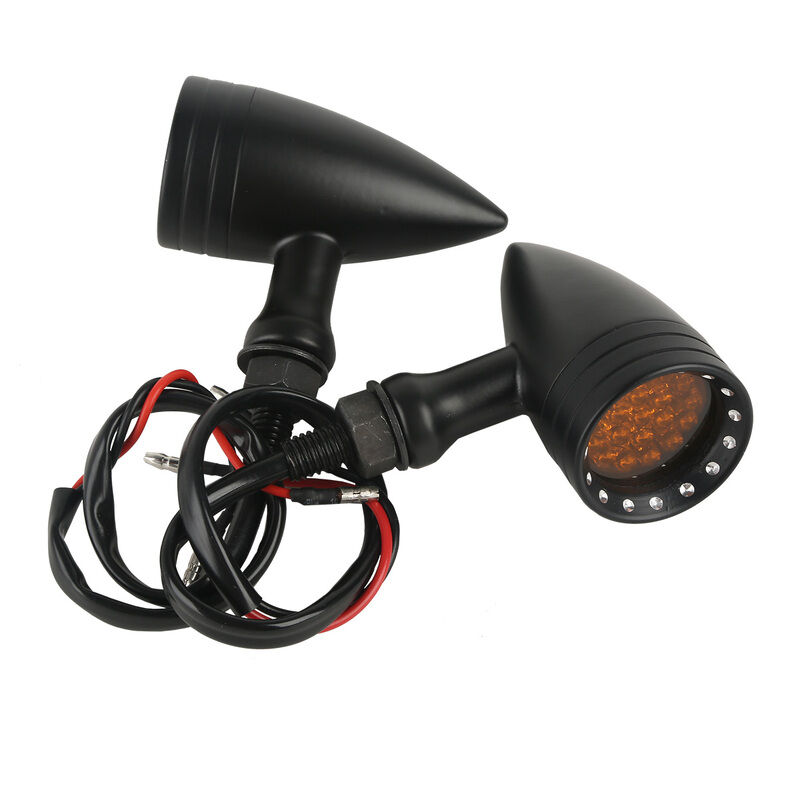 Attitude's Inc Turn Signal Indicator set are 39mm diameter and 63 mm long. Lens is Amber, bulb is LED. Aluminium. Fits all kinds of aftermarket motorcycles.