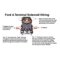 This OEM replacement solenoid is to be used for Ford's fitted with clapper style starter motors and suits Proflow starter motors PFEPM3124 & PFEPM3132. Note: When fitting, you must support threaded stud with a spanner to stop unwanted internal rotation when tightening battery cables. If the copper stud is allowed to rotate, it will create a circuit and indicate a faulty solenoid when ignition is turned off