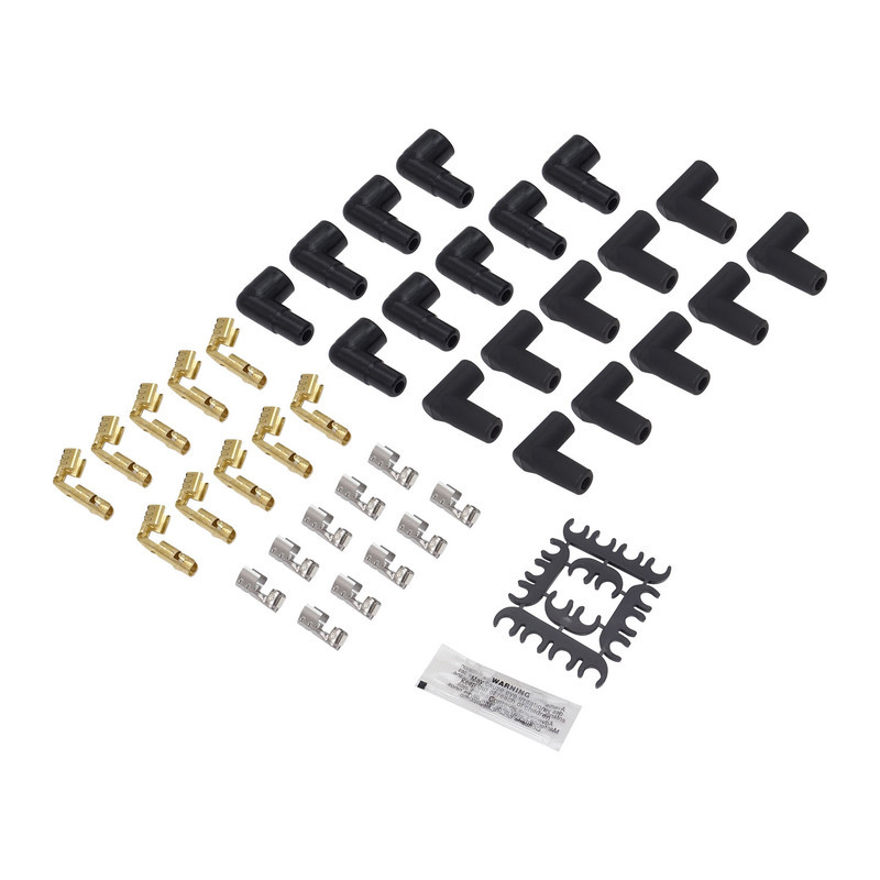 Proflow SuperMax Spiral Core Wire Sets Proflow's SuperMax ignition wires combine an old-school look with current high powered ignition technology. Whether you’re using these for old school muscle cars or modern street rod, these 8.5mm wires have a super low Resistance of 50 ohm/ft, and an aramid inner core wrapped by a spiral-wound conductor for full spark delivery and excellent EMI suppression. A dielectric barrier prevents current leakage, and a braided fiberglass layer strengthens the wires, while maintaining flexibility. Proflow's new ignition wires are available in various configurations with either Silicone or Ceramic plug boots, snap-fit stainless steel positive locking terminals on all plug ends with HEI cap terminals, while socket cap terminals are constructed from high quality brass. For those applications where you could benefit from a combination of straight and 90 degree plug ends, we offer a kit that’s terminated with 2 plug ends and you can choose which you wish to cut off. All part numbers are available in choice of Red or Black wire with black silicone boots and come in either direct or universal fitment. Don’t be fooled by ignition lead diameter, it’s what’s inside that counts! All universal kits are supplied with nylon lead separators and dielectric grease to aid in assembly. Lead Lengths: 2x 52", 1x 48", 1x 45", 2x 37", 2x 33", and 1x 36" Coil Lead