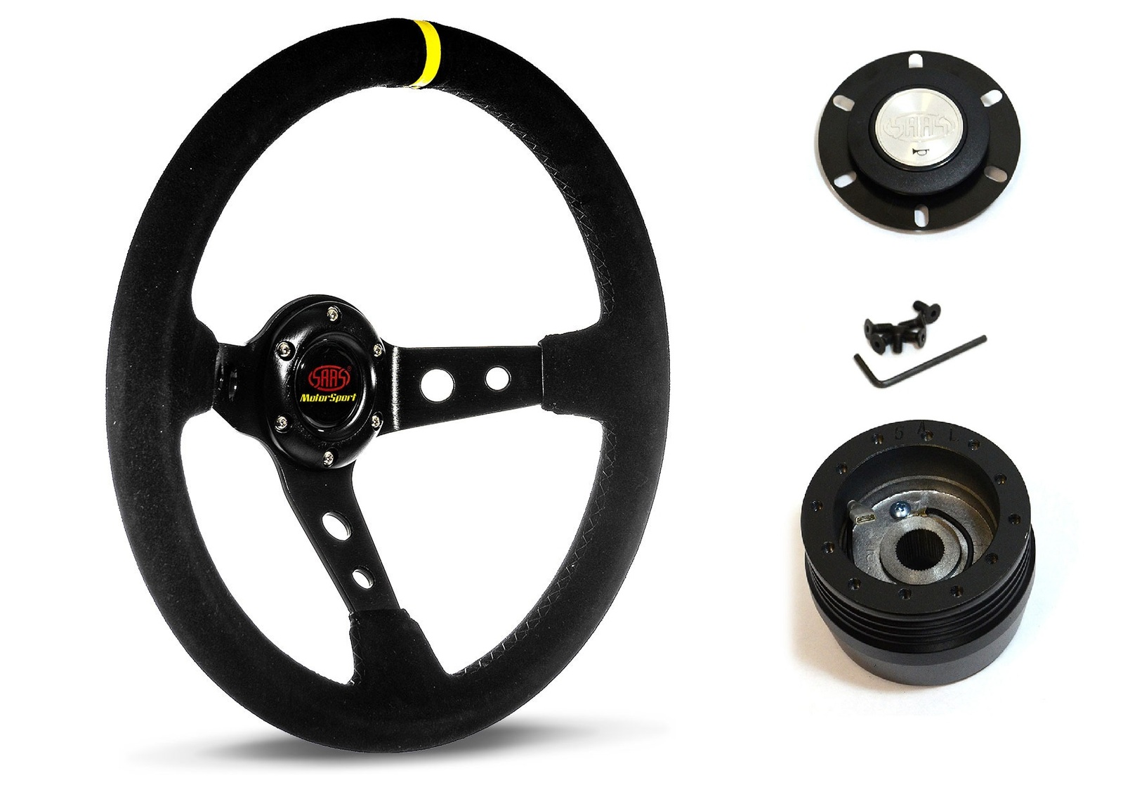 SWGT1 - Steering Wheel Suede 14" Gt Deep Dish Black With Holes + IndicatorEnsure correct fitment by using one of our boss kits.